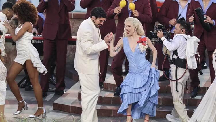 Dentro de los detalles que se presenciaron durante el show del Conejo Malo, destacó una boda real, y es que durante la interpretación de “Monaco” y el dueto con Lady Gaga con la canción “Die With a Smile”, se celebró una boda real en el escenario, capturando la esencia de una fiesta familiar latina.  Y fue dando también pudimos ser participes de la primera invitada de lujo del cantante latino.